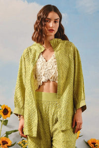 Neon Green Crushed Bandhani Hi Neck Shirt