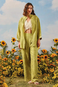 Featuring the Neon Green Crushed Bandhani Pants by 29 India's Sunehri collection. Made from hand-tied and dyed crushed Raidana silk Bandhani, these pants are thoughtfully crafted by Kutch artisans, offering a vibrant expression of tradition in a relaxed, modern fit.