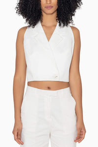 Featuring Neroli Vest by Contemponari. This Neo classic top is a menswear-inspired, sleeveless double breasted crop waistcoat.