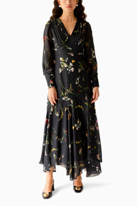 An symmetric dress with baised panels in bottom. It is made in super soft cotton silk and is digitally printed - is a perfect vacation dress with lace inserts to highlight your curves and cinch the waist.