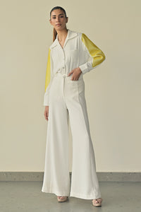 Composition- Viscose Polyester blend with Spandex Color- White Fit- Easy/Relaxed Components- 2 Product Code- SVESOMYASGS09C24&SGTR01C24