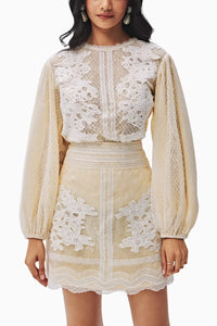 Nina Beige Lace Top and Skirt Set