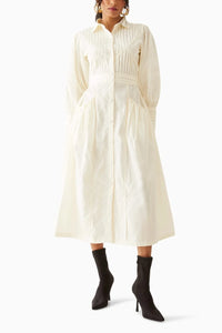 The Noah Dress brings together a refined sense of style with its pleated bodice and self-piping details. The slight puff long sleeves add a touch of charm, while the gathered skirt provides a flowing, comfortable fit. This dress combines thoughtful design elements with classic appeal, making it a versatile and stylish choice for any occasion.