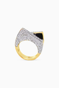 Make a bold statement with the Noir Edge Ring by Miapia. This striking design pairs sleek black enamel with a shimmering pavé of moissanite diamonds, creating a striking contrast that’s both modern and elegant. Crafted in vermeil gold over sterling silver, its sculptural silhouette wraps the finger with contemporary flair, perfect for evening events or a touch of drama in everyday wear. Redefine your jewellery collection with this piece of demi-fine artistry.