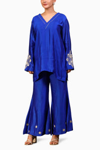 Composition: Chiniya Silk Color: Blue Embroidery: Embroidery Fit: Comfortable Model Height: 5'7 Size that Model is wearing: M Components: 1 ProductCode: SVEEEDA_Noor Blue Kurta Set_M