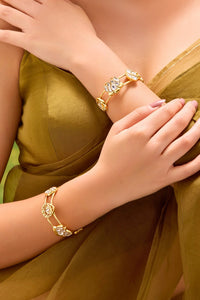 Make a fearless statement with the Noor Kamal Polki Cuff. Its striking Polki craftsmanship delivers bold, timeless elegance that commands attention. Perfect for those who embrace daring sophistication, this cuff adds a powerful edge to your look, blending heritage artistry with modern audacity.