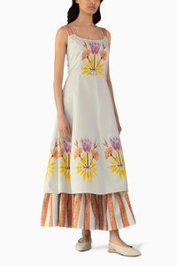 Expertly crafted, the Nordic Meadow Dress boasts a feminine milkmaid style adorned with printed straps and belt. The hem features intricate printed Nordic lotuses, adding a charming touch to this dress. Ideal for morning outings, this dress is a must-have.