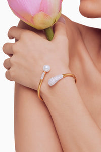 Enhance your style with the Nova Pearl Cuff. This stunning piece features a white pearl set in hypoallergenic brass, complemented by the brilliance of AAA cubic zirconia. The adjustable design ensures a comfortable fit, while the 22k gold plating adds a touch of luxury. A sophisticated accessory that effortlessly elevates any outfit.