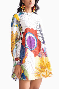 Featuring Nova Ivory Dress by Saaksha & Kinni from Botanica Collection. Discover elegance in this tribal print shift dress with bell sleeves. This eye-catching design combines bold patterns with the elegance of bell sleeves for a chic, standout look.