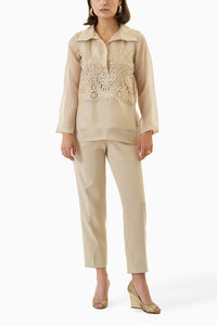Unveil sheer elegance with the Nude Luna Lace Coord Set. Crafted from delicate organza radiates grace in its captivating nude hue. A timeless addition to your wardrobe.