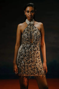 Composition: Net & Lycra Satin Lining Color: Nude Embroidery: Sequins & bugle beads Fit: Fitted Standard Length: 35" Components: 1 Product Code: SVECITACT480
