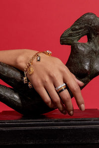 The Essence-This statement charm bracelet is made with Morning Star stones coupled with chic enamel work. It can be styled in multifarious ways on both ethnic and western wear.