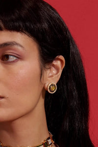 Material-22 karat gold-plated, atleast 4-6x thicker than industry standard Recycled brass / hypoallergenic / 100% skin-safe (tested) Color- Gold & Black Dimensions- 1.8 x 1.8 cm Product Code- SVEAULE4022
