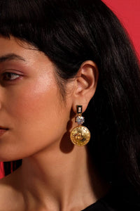 The Essence-These statement coin earrings are made with sparkling Morning Star stones coupled with enamel work. A perfect piece of accessory for both day and evening occasions.