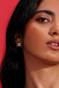 Material-22 karat gold-plated, atleast 4-6x thicker than industry standard Recycled brass / hypoallergenic / 100% skin-safe (tested) Color- Black & Gold Dimensions- 1.8 x 1.8 cm Product Code- SVEAULE4023