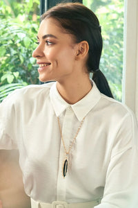 Material-22 karat gold-plated, atleast 4-6x thicker than industry standard Recycled brass / hypoallergenic / 100% skin-safe (tested) Color- Dimensions- 8 x 1.7 cm, chain length - 22 inches Product Code- SVEAULE4031