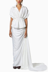 Composition: Shirt- Dupion 60, Skirt- Versace Crepe Color: White Fit: Shirt- Cut for a Regular Fit, Skirt- Designed to be fitted at waist and loose at the hem Components: 2 Product Code: SVE43188-1240103&3241402