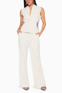 The Nuvira Waistcoat Set features a classic tailored design crafted in elegant pinstripe fabric. This timeless ensemble exudes sophistication and sharp tailoring, perfect for polished, professional looks.