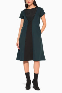 The Oberon Dress boasts a classic silhouette, beautifully accented by a meticulously quilted yoke and central panel. This elegant design combines timeless style with subtle, textured detailing for a polished look.