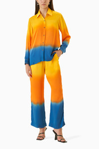 "Composition - Vegan Silk Color - Yellow, Blue Ombre Embroidery Details - Hand Tie & Dyed, Hand Embroidered Swarovski Fit - Casual Fit Product Code - SVERIGUSRT002"