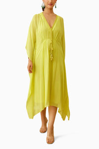 Featuring by Nikasha from Kohinoor Collection. Embrace effortless elegance with this georgette kaftan, adorned with exquisite coin embroidery around the neckline. Paired with a matching foil cotton slip, this ensemble offers a perfect blend of opulence and comfort for a striking, refined look.