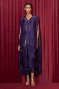 Featuring the Octave Cape Salwar Set from Ridhi Mehra's Jazz-A-Jashn Collection. This elegant ensemble includes a purple fine silk cape beautifully paired with a matching fine silk salwar. Perfect for any occasion, it combines traditional charm with modern sophistication!
