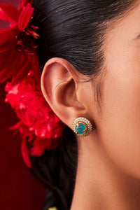 Material-22 karat gold-plated, atleast 4-6x thicker than industry standard Recycled brass / hypoallergenic / 100% skin-safe (tested) Color- Gold, Blue Dimensions- 1.5 x1.5 cm Product Code- SVEAULE5036