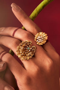 Sustainably made - crafted from recycled brass, reclaimed from industrial use, and processed to be fit for high-grade use and to be 100% allergy free for all skin types.22-karat plated atleast 4-5 times over normal plated jewelry.