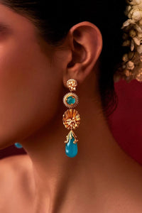Material-22 karat gold-plated, atleast 4-6x thicker than industry standard Recycled brass / hypoallergenic / 100% skin-safe (tested) Color- Gold, Blue Dimensions- 7.5 x1.7 cm Product Code- SVEAULE5021