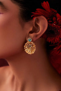 Material-22 karat gold-plated, atleast 4-6x thicker than industry standard Recycled brass / hypoallergenic / 100% skin-safe (tested) Color- Gold, Blue Dimensions- 3.7 x2.5 cm Product Code- SVEAULE5023