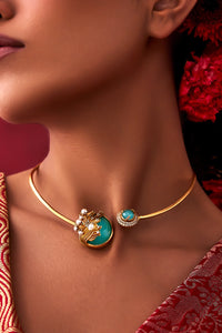 Material-22 karat gold-plated, atleast 4-6x thicker than industry standard Recycled brass / hypoallergenic / 100% skin-safe (tested) Color- Gold, Blue Dimensions- 14 x11.6 cm Product Code- SVEAULE5033