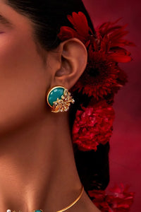 Material-22 karat gold-plated, atleast 4-6x thicker than industry standard Recycled brass / hypoallergenic / 100% skin-safe (tested) Color- Gold, Blue Dimensions- 2.7 x2.5 cm Product Code- SVEAULE5022