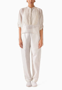 Featuring the Off-White Chanderi Polka Dot Kaftan Set by Nikasha from its Jamdani Collection. This elegant set pairs a delicate polka dot embroidered chanderi kaftan top with matching chanderi pants—crafted in soft cotton for a graceful, timeless look.