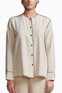Off White Contrast Piping Shirt