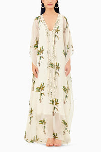 Off-White Hand painted Banana Tree Print Kaftan Dress