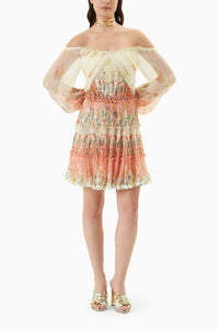 If you're looking for a head-turning statement-making dress, this lurex chiffon dress is for you. Featurning ruch chiffon details, boasting an off-shoulder, lace-trimmed silhouette creates a flattering silhouette. Style it with a pair of statement earrings to complete the look.