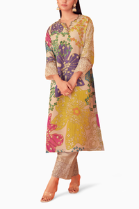 Embrace timeless elegance with the Off-White Printed Tissue Embellished Organza Cuff Kurta paired effortlessly with Embellished Organza Detailed Pants, a testament to refined craftsmanship and sophisticated style. Crafted from delicate tissue organza, the kurta features exquisite embellishments on the cuffs, adding a touch of luxury and charm. Its off-white hue complements various skin tones and occasions, making it a versatile choice for both daytime and evening events.Paired harmoniously with detailed organza pants, the ensemble offers a seamless blend of comfort and sophistication.