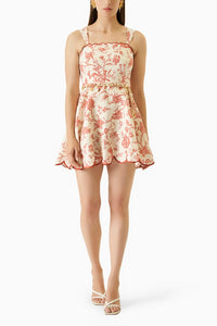 This lightweight Verano classic silhouette features a fitted bodice, scalloped hem and a flattering charm belt. Finish your look with pearl earrings and golden accessories.