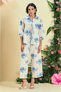 Breezy and refined, this Co-ord Set features a regular fit silhouette with all-over embroidery and front drawstrings for a smart, contemporary look. Comes with a comfortable inner slip for added ease. Paired with fully embroidered straight pants featuring a utility pocket, it’s the perfect pick for effortless summer elegance.
