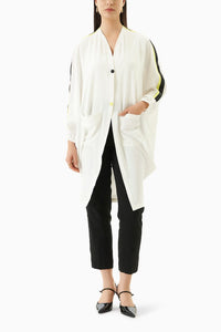 Featuring a blend of feminine styling and striking pattern brings a joyful finish to the Kimono set. Designed with a relaxed and lightweight fabric that drapes effortlessly over your frame, this comfortable and versatile set includes an open front kimono jacket and a dress that's expressed with a florescent green and black tape detailing on sleeves with ankle length pants and matching inner. Pair it with strappy sandal heels.