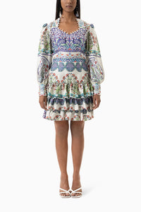 Featuring a perfect offwhite halter neck frill tier dress with criss cross cording detail and frill.