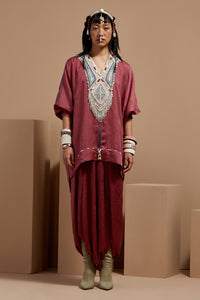 Old Rose Basque Kuru Trapeze Kurta With Drape Pants