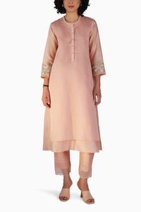 Presenting the Old Rose Tunic in double-layered stripe organza with hand-embroidered sleeve detail paired with the stripe organza pant. This ensemble is a testament to refined craftsmanship and contemporary design, offering a perfect balance of tradition and modernity.