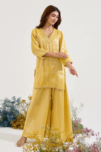 Fabric- Tissue Color- Mustard Embroidery- Aari Embroidery Fit- Relaxed Fit Size Worn by Model- S Model Height- 5'5 Components- 2 Product Code- SVENEROSTKS26