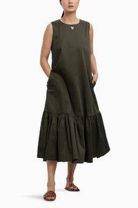 Olive Frill Long Dress with Small Swarovski Heart - The Sverve