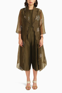 Olive Jumpsuit with Scalloped Collar Organza Jacket