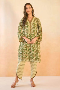 A perfect blend of comfort and elegance, this Olive Petal Cotton Kurta with Tulip Pants is a timeless wardrobe essential. Crafted from breathable cotton, it features an earthy olive tone and delicate petal-inspired detailing for effortless everyday grace.