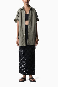 Composition- Sandwash Taffeta Colour- Olive Fit- Cut for an Oversized Fit. Customization - There will be an additional 10% charge Size Guide- Measurements in the size guide are ready garment measurements Components- 1 Product code - SVE4318EE1230106st