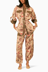 Featuring Olivia Dainty print Co-ord Set by Boho Chic from Love Cabo Collection. This dainty print Co-ord Set with olive green detailing and contrast stiching makes this Co-ord Set unique and vacay friendly.
