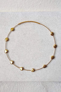 The Olla Golden Neckpiece features a refined, contemporary design with a warm gold finish. Its elegant silhouette adds a touch of sophistication, making it a perfect accessory for both casual and formal looks.